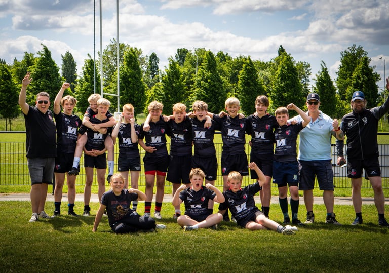 The youth teams from Rugby Club Drachten and Rugby Club Heerenveen unexpectedly qualified for the Dutch Rugby Championship. They officially play a whole division lower than the other qualified teams. As a cluster team with clubs from Friesland, they managed to finish in the top 10 in the Netherlands! A fantastic achievement and a truly enjoyable event to capture for these young players, their coaches, and their parents.
